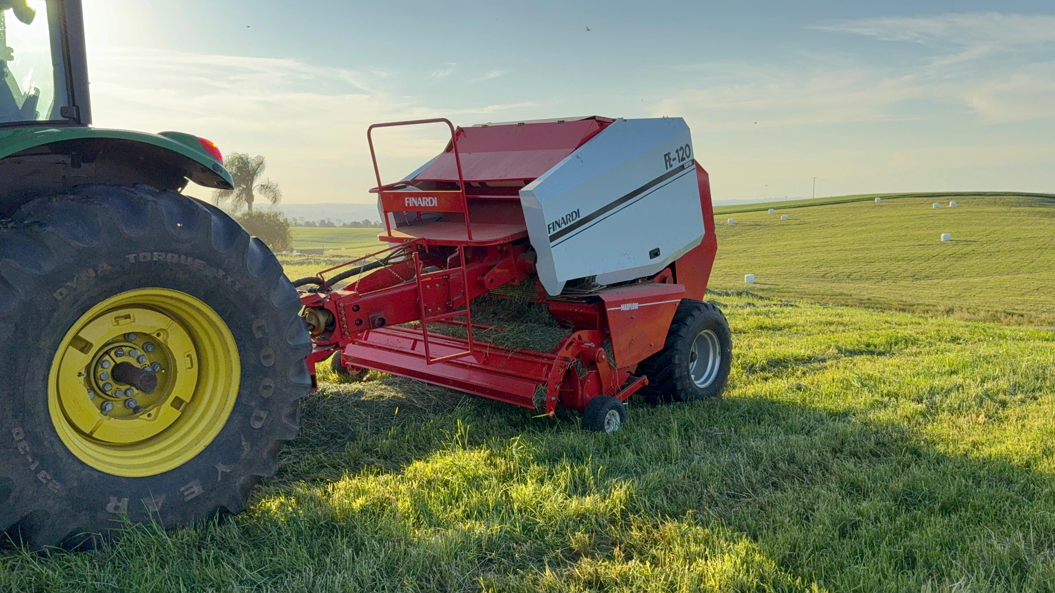 Enfardadeira de fardos cilíndricos de operação em vários tipos de pastagens, com sistema de camara fixa por corrente e alta compactação de manutenção e operação simples.